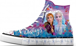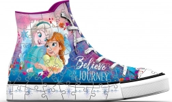 Geniale combinatie van plezier en functionaliteit: een 3D-puzzel in de vorm van een hoge sneaker met de geliefde heldinnen uit de film Frozen 2. Dankzij de stevige kunststof stukjes bouw je een duurzame decoratie die dient als pennenhouder voor pennen, potloden en scharen – zonder lijm, eenvoudig en met een perfect resultaat.