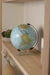 De afgewerkte globe op een voet staat prachtig in de kamer of klas en dient als dagelijks hulpmiddel om aardrijkskunde te herhalen.