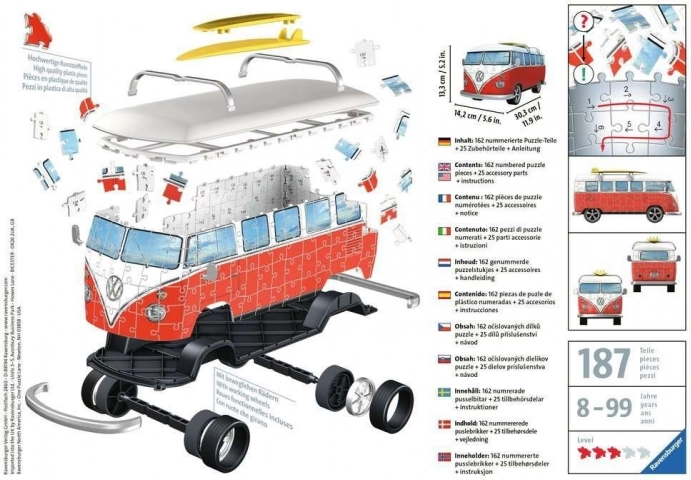 Ontdek plezier én leren met de 3D-puzzel van de Volkswagen T1 van Ravensburger. De set met 162 stukjes levert een realistisch model van deze iconische bus en stimuleert tegelijk logisch denken, geduld en ruimtelijk inzicht. Geweldig voor kinderen vanaf 10 jaar en volwassen liefhebbers.