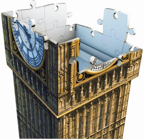 Maak een gedetailleerd model van de Londense Big Ben met deze fantastische 3D puzzel van Ravensburger. Met speciale gebogen of flexibele stukken, die precies op hun plaats passen, kun je eenvoudig een fascinerend model van beroemde gebouwen bouwen zonder lijm. Elk stuk is gemaakt van stevige kunststof, wat uitstekende stabiliteit van de hele constructie garandeert.