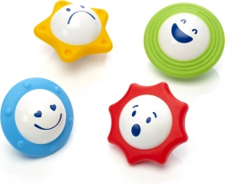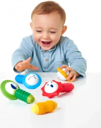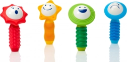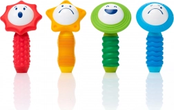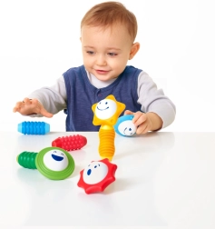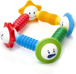 De SmartMax-set is ontworpen om de fijne motoriek en zintuiglijke waarneming van jonge kinderen te ondersteunen. Het bevat 4 magnetische staafjes met een zachte oppervlakte en 4 bollen in bloemvorm die unieke geluiden maken bij het schudden. Op elke bol zijn verschillende emoties afgebeeld, wat kinderen helpt emoties en kleuren te herkennen.
