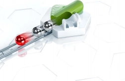 Breid je GraviTrax-systeem uit met de leuke voorraadhouder, die de volgorde van de knikkers door elkaar schudt en nieuwe dynamiek brengt in je knikkerbaan. Zodra de voorraadhouder gevuld is met drie knikkers, gaan ze weer op weg – een ervaring vol spanning en beweging!