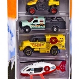 Set Matchbox-autootjes brengt vijf realistisch uitgewerkte voertuigen met draaibare wielen, ideaal voor verzamelaars en kinderen die graag hun eigen avontuurlijke verhalen creëren.