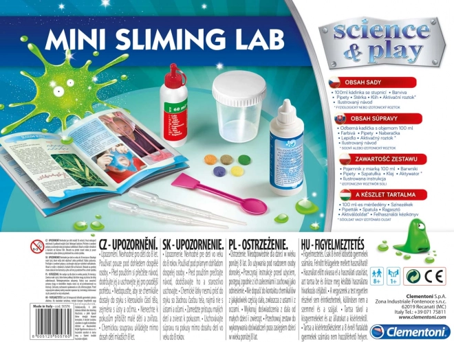 De set Clementoni Science & Play Kleine slijmlaboratorium is ideaal voor alle jonge chemieliefhebbers! Met deze set ontdekken kinderen op een leuke en veilige manier de geheimen van chemische reacties en viskeuze vloeistoffen.