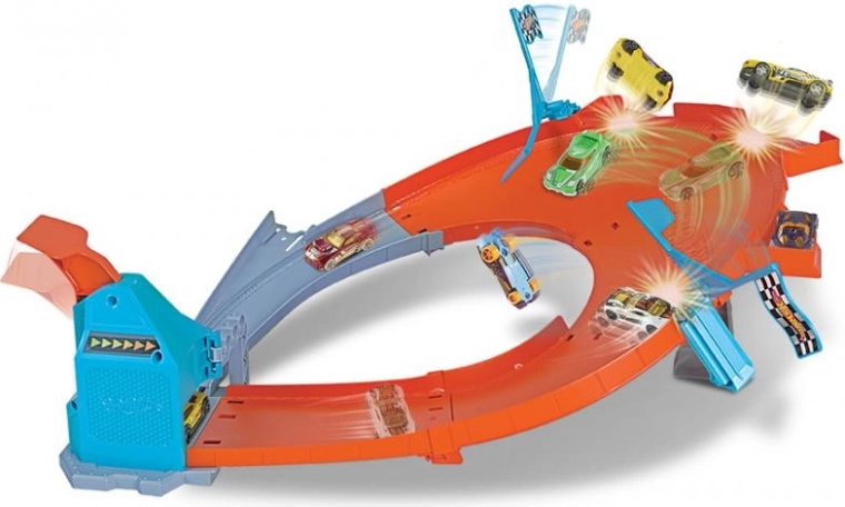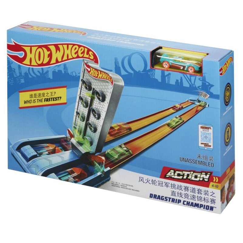 Ontdek een adrenalineverhogende raceset waarin jonge coureurs strijden in 3 disciplines: een driftcircuit met zijstart, parallelle races met countdown en heuvelop met krachtige lancering. Dankzij het modulaire systeem kun je de set combineren met andere HOT WHEELS-banen en zo je eigen grootse snelheidswereld bouwen.