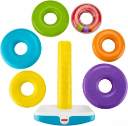 Deze piramide van ringen is ontworpen om zowel plezier als leren te maximaliseren. Kinderen kunnen de kleurrijke ringen vastpakken en stapelen op de schommelbasis. De kleinste ring is zo gemaakt dat als er mee geschud wordt, de gekleurde balletjes binnenin ratelen voor extra zintuiglijke stimulatie.