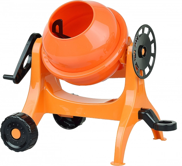 De mixer is uitgerust met wielen en een uittrekbare trekhaak, zodat hij eenvoudig aan kinderspeelgoedvoertuigen kan worden gekoppeld en materiaal kan worden vervoerd waar het nodig is. De compacte afmetingen maken zowel hanteren als opbergen gemakkelijk.