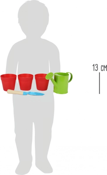 Tuinier samen met kinderen met deze speelse set van small foot, met een gieter, een metalen schep met houten handvat en 3 herbruikbare bloempotjes. De afvoergaten in de potjes, de duurzame materialen en het kindvriendelijke formaat ondersteunen de eerste kweeksuccessen en stimuleren fijne motoriek en liefde voor de natuur.