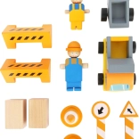 Arbeidersfiguren, een vrachtwagen, kegels, borden en barrières vormen een complete bouwplaats en inspireren tot fantasierijke verhalen.