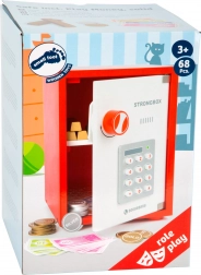 De leuke en educatieve houten kluis van het merk small foot helpt kinderen de wereld van geld en het veilig bewaren van schatten te ontdekken. De kluis opent met een combinatie, heeft een draaibare cijferknop met klikgeluid en drukknoppen. Inclusief een uitgebreide set accessoires – eurobankbiljetten, gouden en zilveren munten en houten goudstaafjes. Ideaal voor rollenspel, het ontwikkelen van financiële geletterdheid en fijne motoriek.