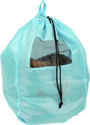 De turkooizen zak met gaasvenster maakt het makkelijk om het touw na het spel te dragen en op te bergen.