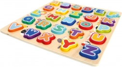 Een leuke houten puzzel met het Engelse alfabet, dieren en kleurrijke letters die zowel leren als fijne motoriek ondersteunt. Onder elke letter vinden kinderen een afbeelding en de Engelse naam van het dier, waardoor het een geweldige hulp is voor de eerste stapjes in het Engels. Oefenen van letters, dieren herkennen en coördinatie ontwikkelen in één duurzame uitvoering van multiplex.