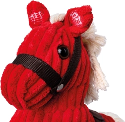 Geef je kind eindeloze uren speelplezier met dit rode pluchen paardje van het merk Bino. Perfect voor kinderen vanaf 3 jaar. Het paardje is uitgerust met afneembare accessoires, waaronder een halster en een zadel, zodat je kind echte avonturen kan naspelen. Druk gewoon op de knop en het paardje maakt geluid, alsof het tot leven komt! Batterij niet inbegrepen.