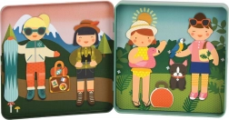 Leuk magnetisch zakboekje voor kleine reizigers. Met meer dan 25 magneten kunnen kinderen onderdelen mixen en figuurtjes maken, twee scènes binnenin ontdekken en verbeelding en fijne motoriek ontwikkelen. De praktische blikken doos sluit stevig, dus ideaal voor onderweg.