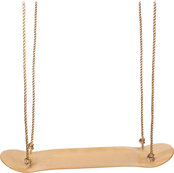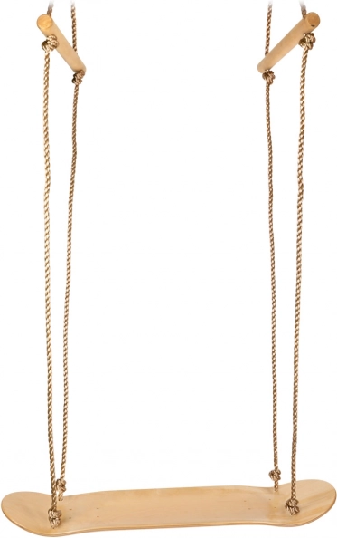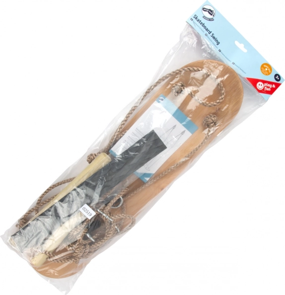 Beleef plezier én balanstraining met deze houten schommel in de vorm van een skateboard. Kinderen kunnen zitten of staan zoals op een echt board; de verstelbare handgrepen en de antislip sticker verhogen de veiligheid. Stevig multiplex, duurzame nylontouwen met metalen onderdelen en een draagvermogen van 100 kg garanderen een lange levensduur, zowel binnen als in de tuin.