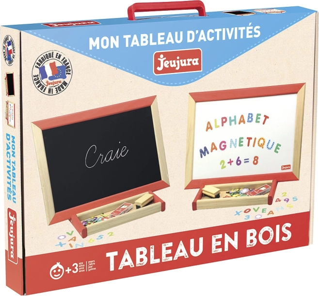 De Jeujura houten multifunctionele tafel is een ideale educatieve speelgoedset voor jonge kinderen. Gemaakt van massief beuken- en grenenhout uit Frankrijk, wat hoge kwaliteit en milieuvriendelijke productie garandeert. Belangrijkste kenmerken: