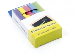 Praktische set schoolkrijt in kartonnen verpakking, ideaal als aanvulling voor kinder- en kantoorborden. Bevat 10 stuks kleurkrijt voor comfortabel schrijven en tekenen op het bord.