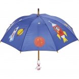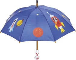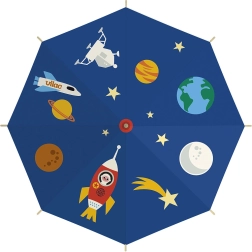 Ontdek de charme van regenachtige dagen met de VILAC Kinderparaplu Astronaut. De kleurrijke ruimtelijke print met planeten en raketten maakt de weg naar crèche of school leuk, terwijl de robuuste constructie betrouwbaar beschermt tegen de regen. De ergonomische houten handgreep ligt goed in kind handen en zorgt voor een zekere greep.