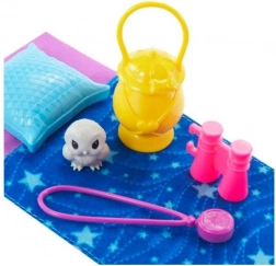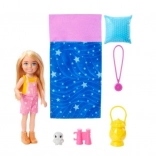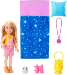 Ontdek de natuur met de Barbie Chelsea-pop geïnspireerd op de serie BARBIE It Takes Two. Chelsea is klaar voor uren plezier in een roze tuinbroek en wandelschoentjes, terwijl accessoires zoals een verrekijker, kompas en lampje de nieuwsgierigheid en avontuurlijke geest prikkelen. Na een dag vol belevenissen leg je haar in de superzachte slaapzak met sterretjes en valt ze met het kussentje heerlijk in slaap.