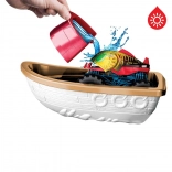 Open de bek van de krokodil en lanceer de monsterlijke Piran-ahhh truck de actie in! Zodra hij in het koude water tussen de kaken valt, verandert hij direct van kleur en onthult een nieuwe look. Giet je warm water over het voertuig in het bootje, dan keert het terug naar zijn oorspronkelijke design – steeds opnieuw.