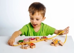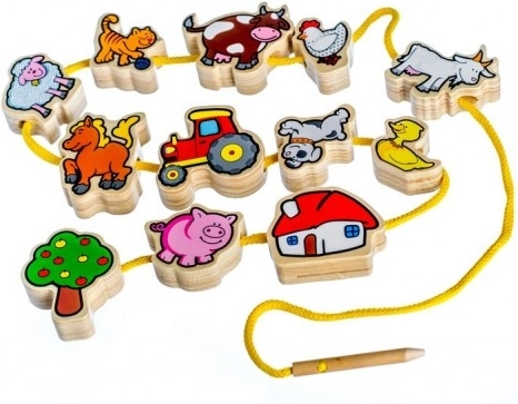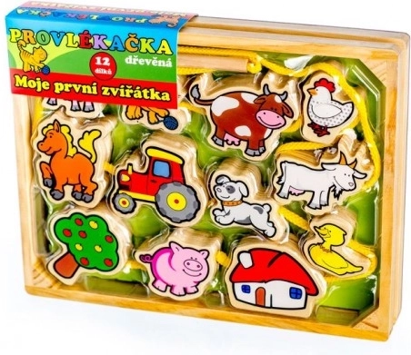 Dit houten inrijgspel is een ideale hulp voor de allerkleinsten. Kinderen leren ermee traditionele Tsjechische dieren en hun jongen kennen. Speelse activiteiten rond het rijgen stimuleren het vertellen van verhalen en leren kinderen niet alleen geduld, maar ook het herkennen van kleuren.