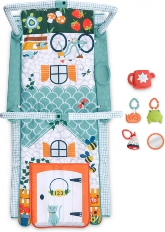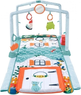 Het universele speelkleed Fisher-Price 3-in-1 Ontdekkershuis groeit mee vanaf de geboorte: het biedt spelen op de rug, tummy time en een tunnel om te kruipen en tijgeren. Inclusief 5 hangende speeltjes zoals een spiegeltje en een bijtring en een elektronische gieter met lichtjes en muziek tot wel 20 minuten. Het zachte kleed is machinewasbaar en ondersteunt de zintuiglijke ontwikkeling, fijne motoriek en coördinatie.