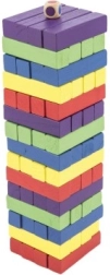 Klassieke houten toren is ideaal voor alle leeftijden. Met 60 kleurrijke stukken kun je binnen of buiten uren plezier hebben.