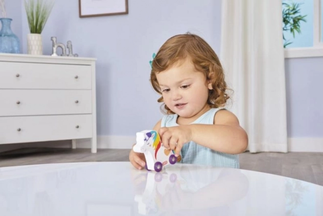 Het speelgoed is uitgerust met vier functionele wielen die voor eenvoudige bediening en beweging zorgen. Ideaal voor het ontwikkelen van grove motoriek en verbeeldingskracht vanaf 12 maanden.