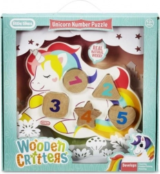 De puzzel in de vorm van een eenhoorn helpt kinderen bij het herkennen van vormen en cijfers.