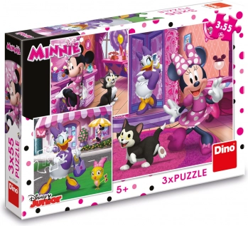 De doos bevat 3 afzonderlijke puzzels van elk 55 stukjes met DISNEY MINNIE-motieven, zodat kinderen altijd een nieuwe afbeelding kunnen kiezen en het plezier niet snel ophoudt.