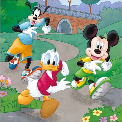 Ontdek de magie van puzzelen met de geliefde DISNEY-figuren. De set van drie puzzels met elk 55 stukjes brengt sportieve avonturen van MICKEY, MINNIE en hun vrienden – hardlopen, basketbal en fietsen. Kinderen trainen tijdens het leggen hun geduld, logisch denken en oog-handcoördinatie.