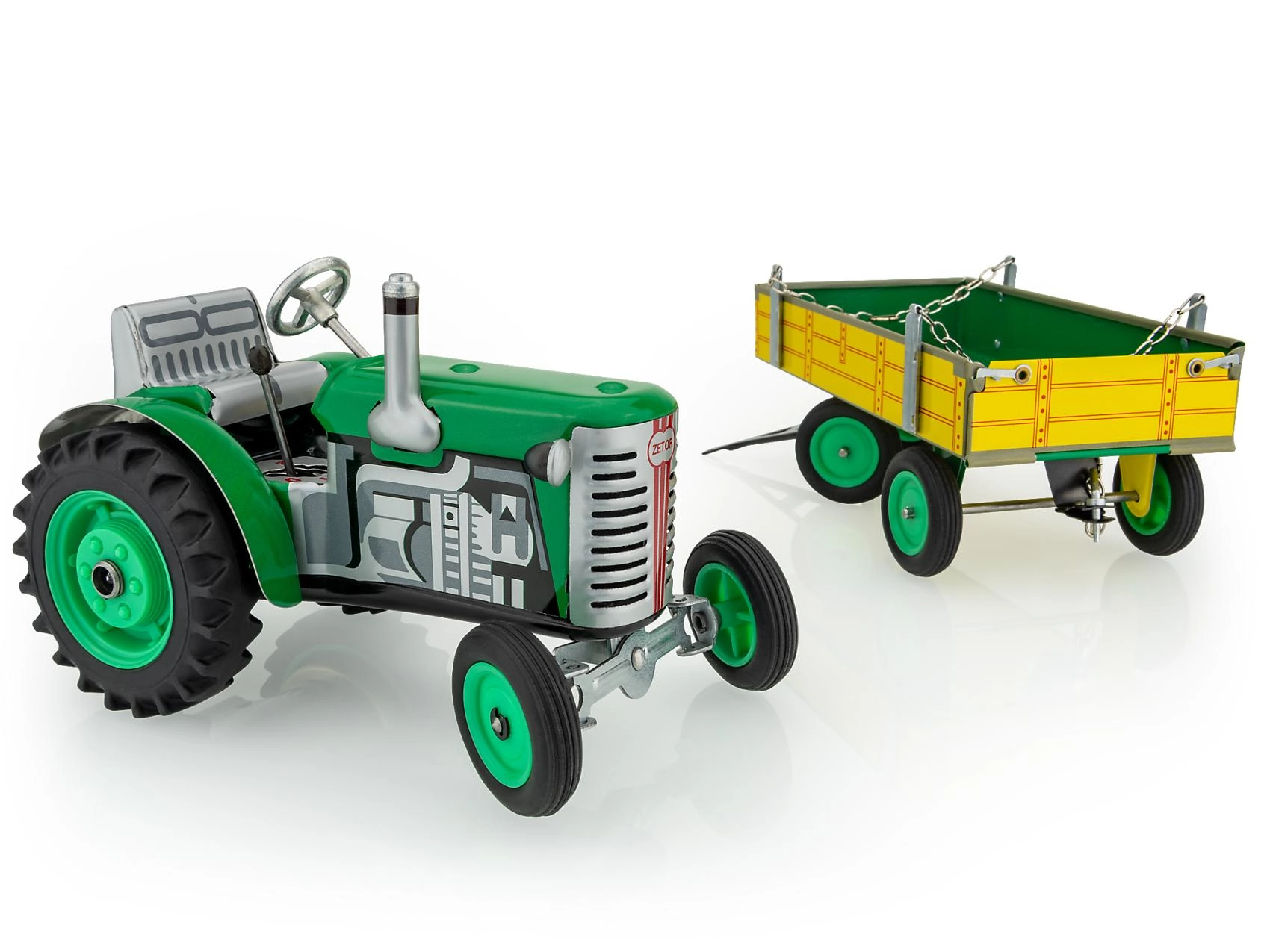 Tractor Zetor met aanhanger op opwindsleutel metaal 28 cm KOVAP – Groen