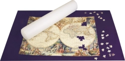 De set bevat een paarse vilten mat 164 × 100 cm, een opblaasbare rol 106 × 10 cm en 3 bevestigingsbanden. Geschikt voor puzzels tot 140 × 95 cm (ca. 3.000 stukjes). Een uitstekende keuze voor wie ruimte wil besparen en toch de puzzel op elk moment klaar wil hebben om verder te gaan.
