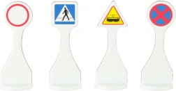 De set ondersteunt verkeerseducatie, de ontwikkeling van fijne motoriek en logisch denken. Inclusief beschrijving van de betekenissen van de borden in het Tsjechisch en Slowaaks.