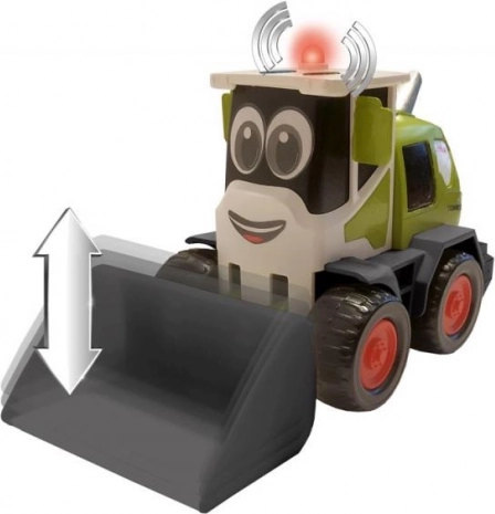 Deze schattige CLAAS Mini laadwagen in groen met zwarte wielen en rode details verrukt de allerkleinsten met realistische functies. Na het indrukken van de knop klinkt het motorgeluid en gaan de waarschuwingslichten branden. De handmatig bedienbare schep maakt eenvoudig heffen en laten zakken mogelijk, wat de fijne motoriek ondersteunt.