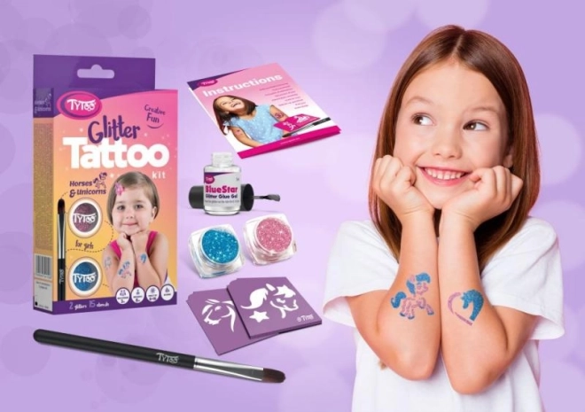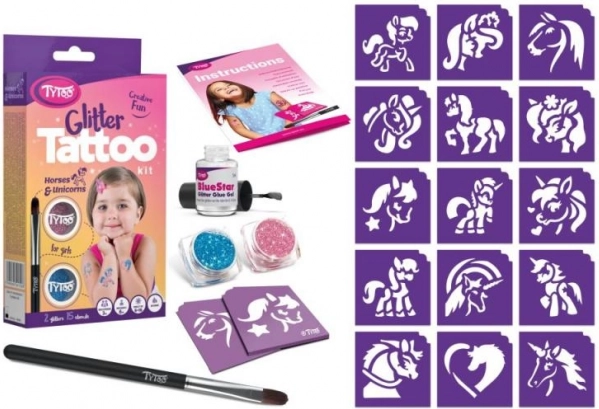 Geniet van de magie van glinsterende tatoeages met prachtige motieven van paarden, pony's en eenhoorns dankzij de TyToo set. Maak gebruik van unieke ontwerpen die tot wel 18 dagen op de huid blijven, afhankelijk van je huidtype en zorgvuldigheid bij het hanteren. Grotere sets bevatten bewegende ogen en zelfklevende steentjes die je op de huid kunt bevestigen voor een unieke look.