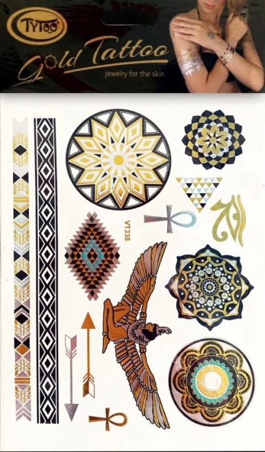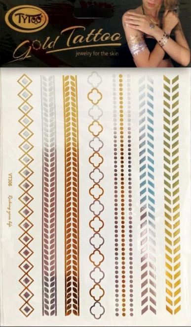 Gouden plakband tattoos TyToo zijn echte sieraden voor je huid. Eenvoudig en snel aan te brengen, geschikt voor verschillende delen van het lichaam.