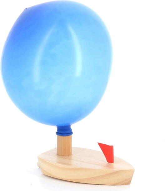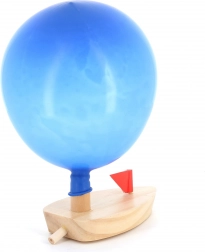 Blaas de ballon op en kijk hoe het bootje over het water beweegt dankzij het eenvoudige principe van luchtvoortstuwing.