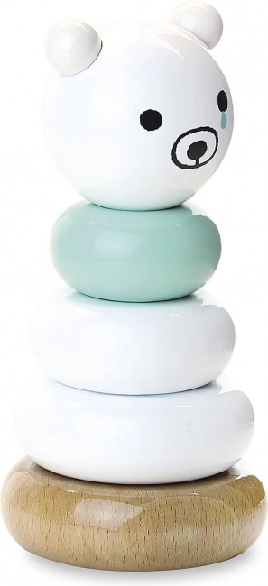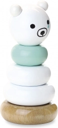 Deze elegante stapeltoren met een beertje in een wit–mint kleurencombinatie en een natuurlijk houten decor is een ideale eerste educatieve speelgoedkeuze. Kinderen oefenen het correct rangschikken van ringen, het onderscheiden van groottes en het ritme van bewegingen, terwijl de zachte kleuren en de schattige uitdrukking van het beertje nieuwsgierigheid en rustig spel stimuleren.