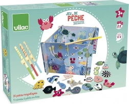 Ontdek de magie van de onderwaterwereld met het spel Vilac Vissen vangen zeediertjes. Kinderen beleven zowel competitieve als coöperatieve momenten terwijl ze schattige visjes en wezentjes vangen met magnetische hengels. De prachtige illustraties van Michelle Carlslund en de hoogwaardige houten onderdelen zorgen voor duurzaamheid en visueel plezier.