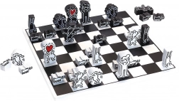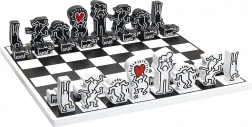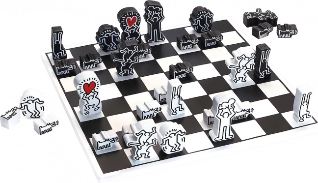 Deze schaakset van Vilac tilt het klassieke strategiespel naar een designobject. Iconische silhouetten en harten uit het werk van KEITH HARING maken van elke partij een esthetische beleving. Dankzij de robuuste houten uitvoering biedt de set een lange levensduur en een prettig spelgevoel.