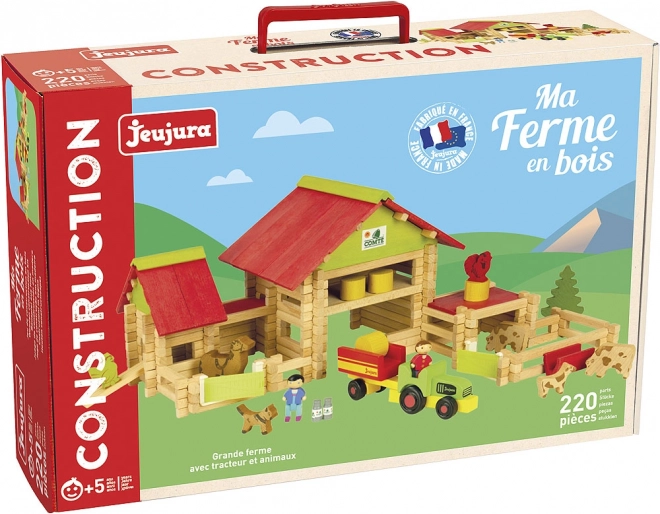 Ontdek de charme van het platteland met de houten bouwset JEUJURA, die kinderen het leven op de boerderij laat beleven en hun creativiteit en fijne motoriek stimuleert. De set bevat 220 onderdelen van massief hout, een tractor en dieren en wordt geleverd in een praktische koffer met een eenvoudige handleiding. Gemaakt in Frankrijk van hoogwaardig beuken- en grenenhout met waterverdunbare verven.