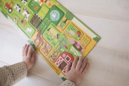 Volg de paadjes met je vinger en ontdek 20 objecten op de boerderij – plezier dat zowel opmerkingsvermogen als geduld traint.