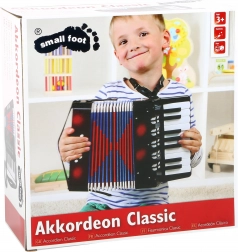 De kinderaccordeon small foot Classic brengt de vreugde van het ontdekken van klanken en ritmes naar de kinderkamer. De lichte kunststof behuizing, compacte afmetingen en comfortabele riemen maken het mogelijk om staand of zittend te spelen zonder onnodige belasting van de handen. De kleurrijke balgen en glanzende afwerking spreken direct aan.