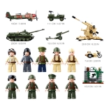 Bouw een tank, terreinwagen, vliegtuig, motor en artilleriestukken. Realistische details en bewegende delen maken het mogelijk om spannende gevechtsscènes te creëren.