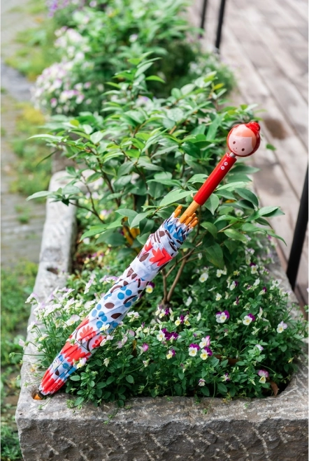 Stijlvolle kinderparaplu met het motief van Roodkapje van de Japanse ontwerper Shinzi Katoh. Vrolijke print en hoogwaardige afwerking. Voorzien van een metalen frame, een houten handgreep voor comfortabel vasthouden en gemaakt in Frankrijk.