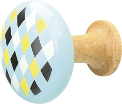 Verrijk de kinderkamer met originele muurhaken van het Franse merk Vilac. Deze set bevat twee haken: één met een Uiltje illustratie en de andere met levendige kleurrijke ruitjes. Ze zijn ideaal voor het ophangen van jassen, tassen of andere items die je bij de hand wilt hebben.