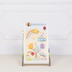De houten loopwagen met activiteiten is ontworpen om niet alleen leuk, maar ook leerzaam te zijn. Met zijn hulp leren kinderen niet alleen lopen, maar ontwikkelen ze ook hun zintuiglijke vaardigheden.