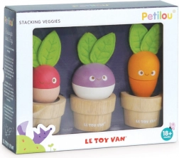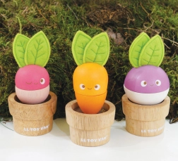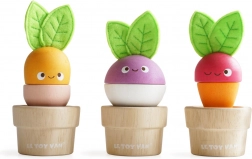 Een schattige set houten bloempotjes met groenten van LE TOY VAN stimuleert fijne motoriek, oog-handcoördinatie en verbeelding. Kinderen kunnen de afzonderlijke delen mixen en stapelen tot wortel, radijs en biet, of hun eigen combinaties maken. Het speelgoed is gemaakt van duurzaam hout, heeft vilten blaadjes en is met de hand bijgewerkt met niet-giftige verf op waterbasis.