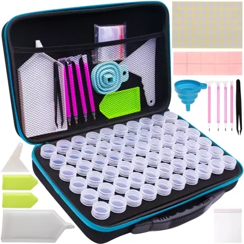Deze praktische set maakt zowel de organisatie als het creatieve werk eenvoudiger voor elke liefhebber van diamond painting. Alles is veilig opgeborgen in een stevige, duurzame koffer met rits, inclusief overzichtelijk geplaatste potjes in een foam-inzet en een gaasvak voor accessoires. Zo heb je alle steentjes en tools altijd bij de hand en perfect gesorteerd.